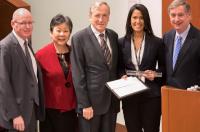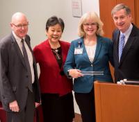 CUMC presented the 2017 Baton Awards at a ceremony on Dec. 7. Three staff members—Martha Adorno, Akil Johnson, and Karen Pagliaro-Meyer—received Baton Awards, which were created in 2009 to recognize exceptional team players at the medical center. The awards were presented at the December meeting of the CUMC Administrators Network.