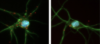 CREB3L2-ATF4 pairs (red) inside different neurons. Image from Hengst laboratory / Columbia University.