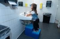 Faith's step stool will make a variety of activities easier, from reaching light switches to washing hands.