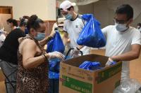 Food is bagged for distribution at Holyrood Church. (Photo: Eileen Barroso)