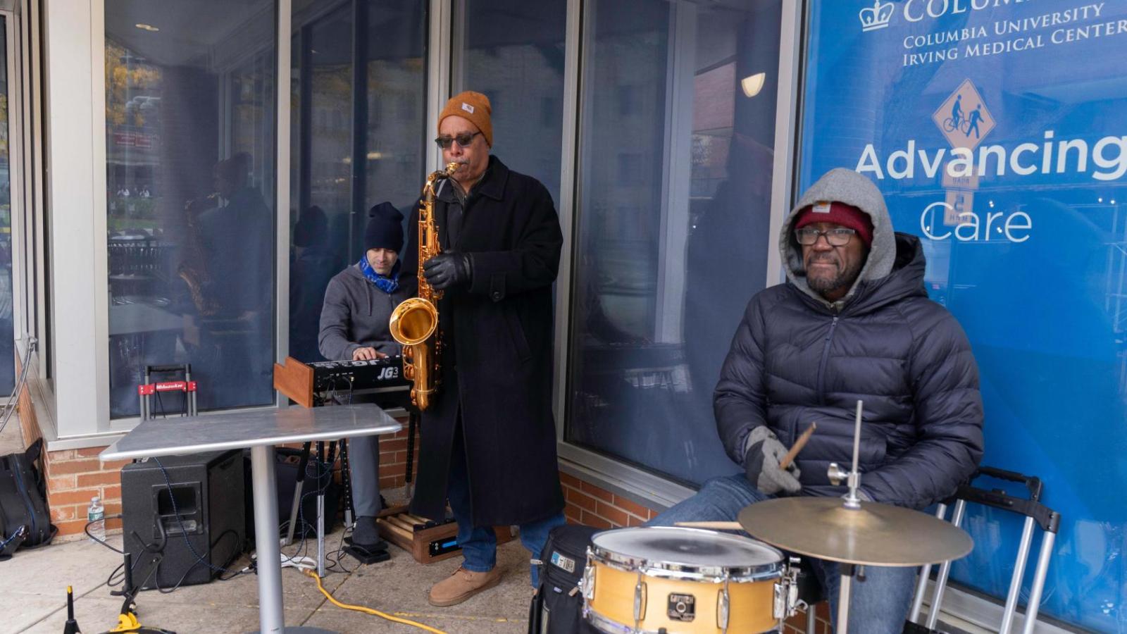 Despite an unseasonable snow shower, members of the CUIMC and Washington Heights communities enjoyed warm soup, a live jazz performance, a winter squash giveaway, and a fall photo contest at the CUIMC Annual Fall Festival on Nov. 11 in Haven Plaza.