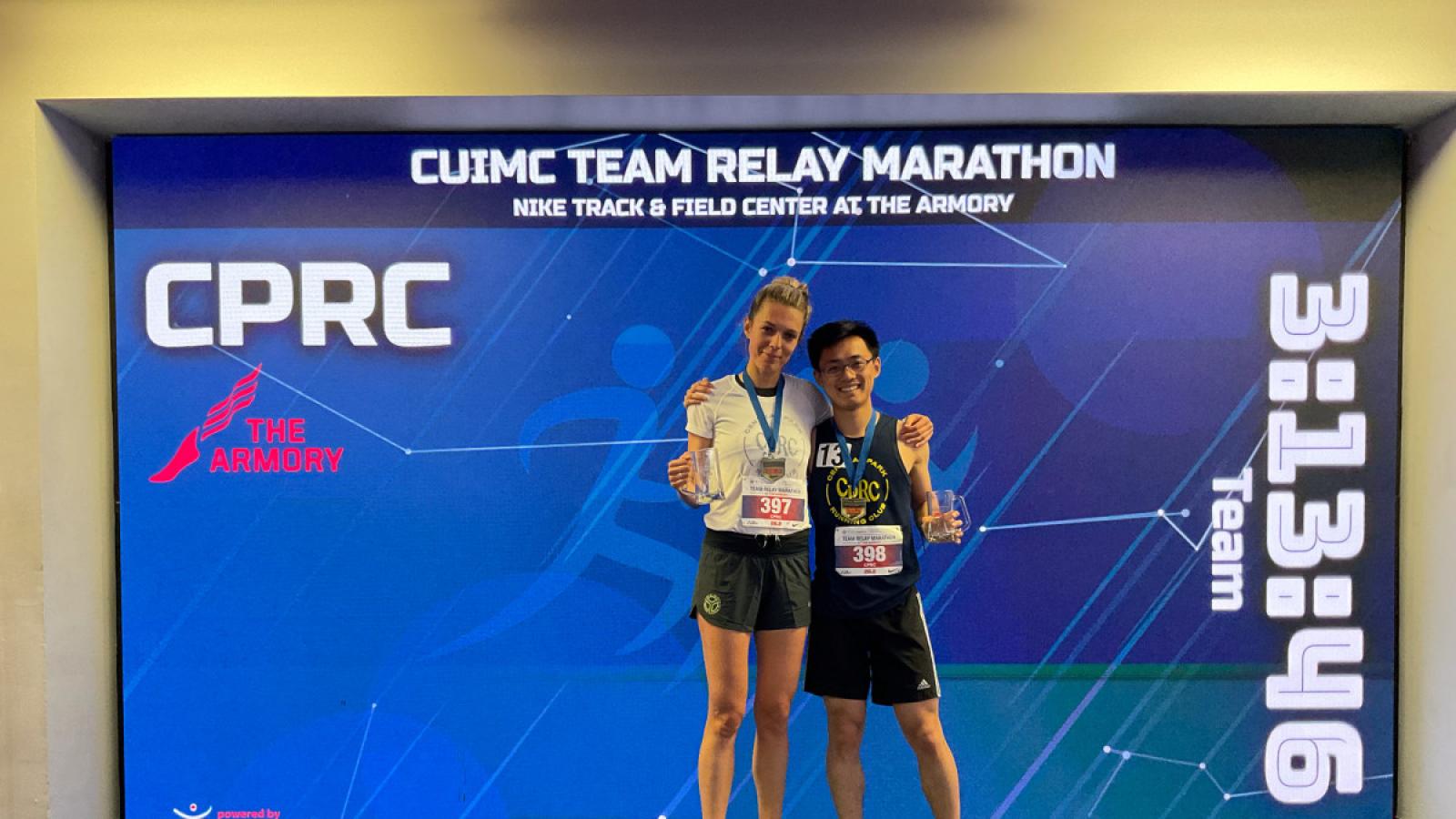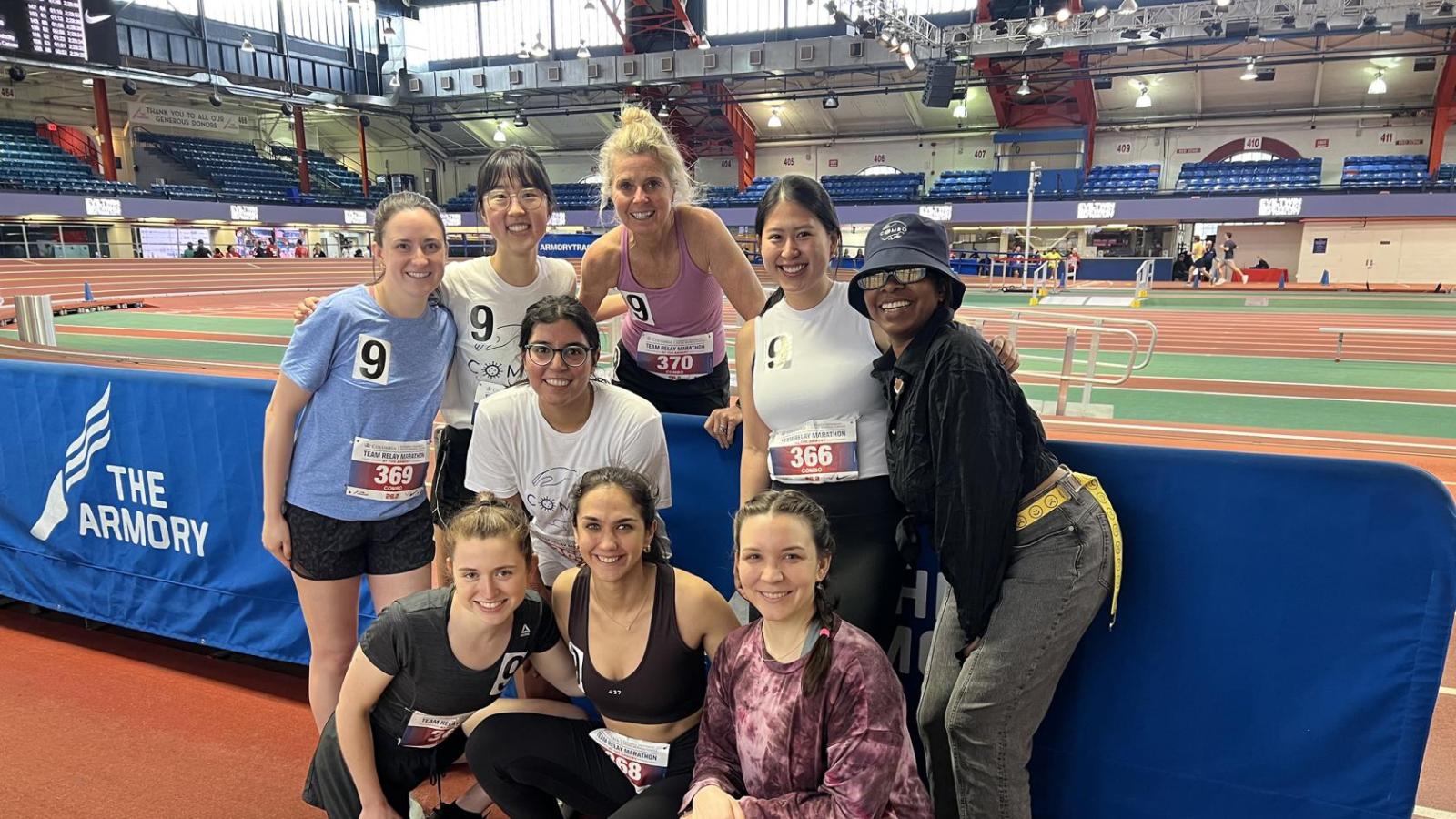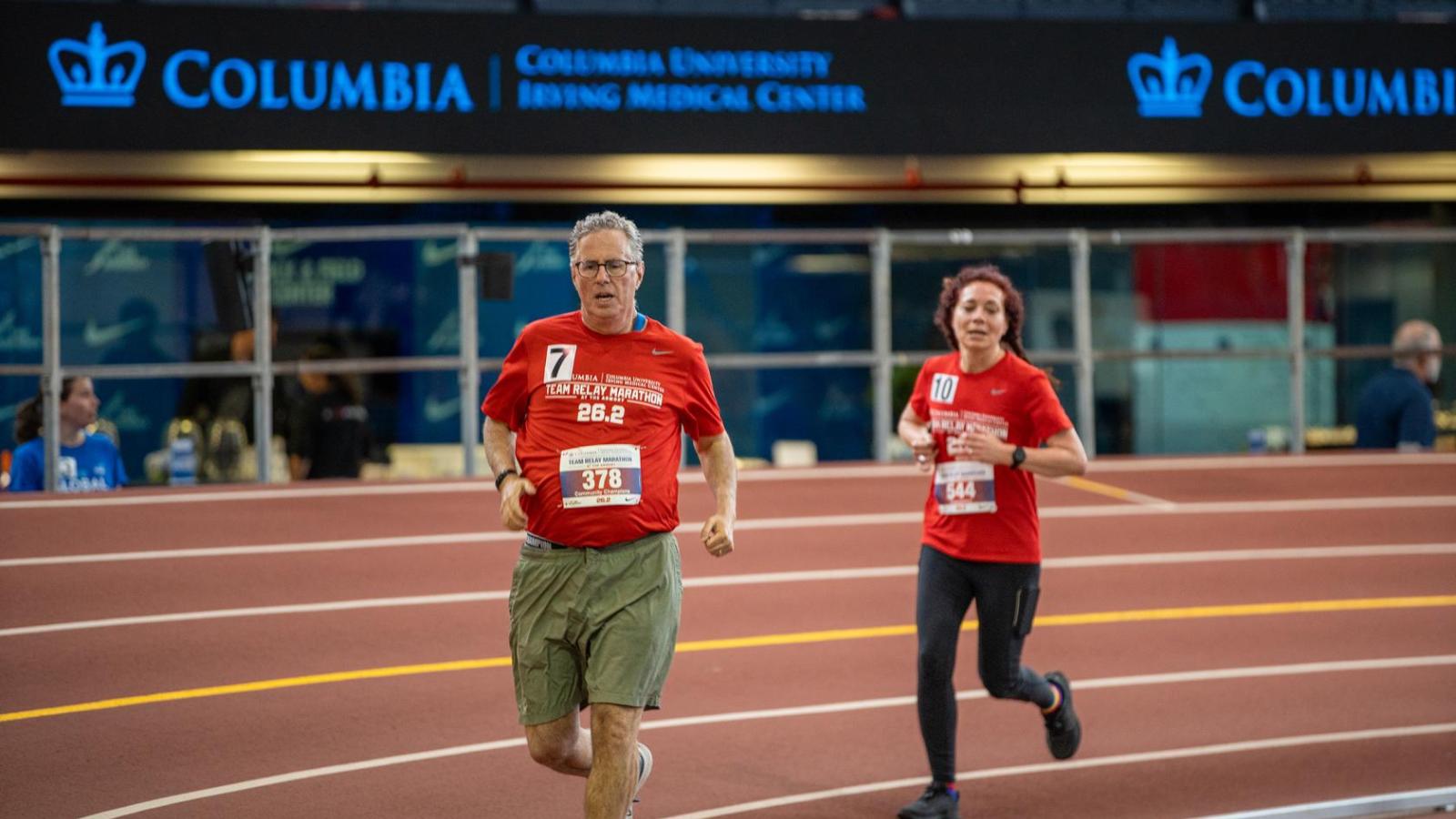 More than 200 employees participated in the CUIMC Team Relay Marathon at The Armory last week. At the relay race event, which also included teams outside of Columbia, teams of two to eight runners took turns running a combined 26.2 miles on The Armory’s 200-meter indoor track. CUIMC had 32 teams of 208 runners competing in the medical & health care division.