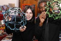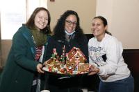 Dean Katrina Armstrong congratulates Kellie Hoehing and Dawn Scotto, who won first place in the Classic Gingerbread House category.