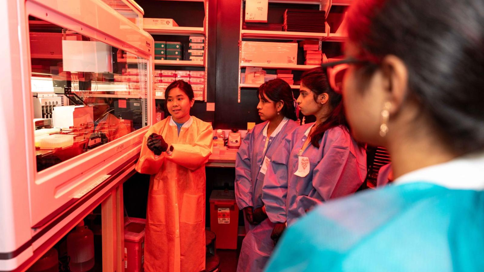 In 2022, 18 sophomores and juniors from University Heights High School in the South Bronx spent a week conducting hands-on lab experiments to study cancer with the eClose Institute and the Herbert Irving Comprehensive Cancer Center. Photo by Timothy Lee Photography.
