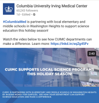 #ColumbiaMed is partnering with local elementary and middle schools in Washington Heights to support science education this holiday season!