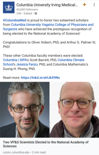#ColumbiaMed is proud to honor two esteemed scholars from Columbia University Vagelos College of Physicians and Surgeons who have achieved the prestigious recognition of being elected to the National Academy of Sciences!