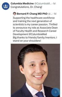 Supporting the healthcare workforce and training the next generation of scientists is my career passion. Thrilled to announce my role as Associate Dean of Faculty Health and Research Career Development @ColumbiaMed Big thanks to friends/family/mentors. I stand on your shoulders!