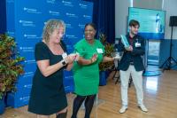 The summit concluded with the presentation of awards to Employee Resource Group champions and trailblazers and a networking reception. From left: Shydeka Richards, ERG champion; Lina Maria Alfonso, ERG champion; Shaquanna Williams, ERG trailblazer; and Daniel Dobrin, ERG champion.