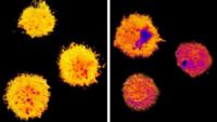 Natural killer cells with more fat packed into their membranes (as represented by the yellow color) are protected from the toxic substances deployed when the cell attacks. (Orange laboratory)