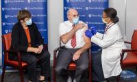 Katalin Karikó and Drew Weissman receiving a dose of the COVID-19 vaccine they helped to create. (Credit: Penn Medicine)
