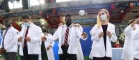 Students in the VP&S Class of 2025 started their educational journeys on a campus still defined by the COVID pandemic. At the 2021 White Coat Ceremony, a rite of passage signifying each student’s initiation into the medical profession, masks were required, and the event was held in the airy Armory with a limited number of family in attendance.