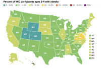 Obesity, which remains historically high in the United States, showed recent declines in preschool-age children. However, obesity prevalence is two to three times higher in children from low-income families compared with higher-income counterparts.