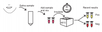 The new test eliminates the extraction step and simplifies processing. Saliva is collected in a cup and then placed into a tube containing enzymes and reagents that detect the virus's RNA. The tube is then placed into a water bath or heat block to keep the sample warm throughout the reaction. Within 30 minutes, the fluid in the tube turns yellow if the virus's RNA is present and red if the virus isn't present.