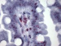 Photomicrograph showing the lnc13 RNA expression in an individual on a gluten-free diet. (Credit: Dr. Govind Bhagat, Department of Pathology and Cell Biology, Columbia University Medical Center)