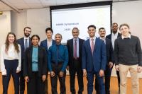 Columbia medical students graduating from the MD-MS Program in Biomedical Sciences presented their research at a March 28th symposium. From left: Emily Gordon, Ritt Givens, Kavya Rajesh, Jinjie Ling, Paul Lewis, Anil Lalwani (associate dean for student research), Damian Teasley, Matan Malka, Wisdom Yevudza, and Hart Fogel. Not pictured: Lauren Tucker. Photo by April Renae for Columbia University Vagelos College of Physicians and Surgeons.