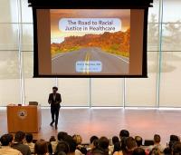 Keynote speaker Danny Neghassi, MD’11, credit: Lillian Liao