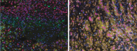 Glioblastoma samples before immunotherapy treatment from a patient who didn't respond to the therapy (left) and a patient who did (right). Images: Raul Rabadan / Columbia University.