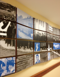 Part vintage photography exhibit, part history lesson, part eye-catching addition to unadorned walls—the new Black Building corridor mural is all of these. Designed by the prominent museum-exhibition design firm Ralph Appelbaum Associates, it is installed in the first-floor corridor, near the X Caffe.