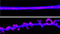 Memories are stored for the long-term with the help of prion-like proteins called CPEB. CPEB prions aggregate and maintain synapses that recorded the memory [“spines” in the bottom image]. When CPEB prions are not present or are inactivated, the synapses collapse and the memory fades [see upper image]. Image credit: Lab of David Sulzer, PhD, Columbia University Medical Center
