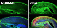 David Doobin, PhD, an MD/PhD student in the Vallee lab, had recently published a seminal paper identifying defects in neuronal progenitor cell behavior responsible for microcephaly in the developing rat brain. Drs. Rosenfeld and Doobin teamed up to combine their expertise in virology and in microcephaly to attack the Zika virus question.