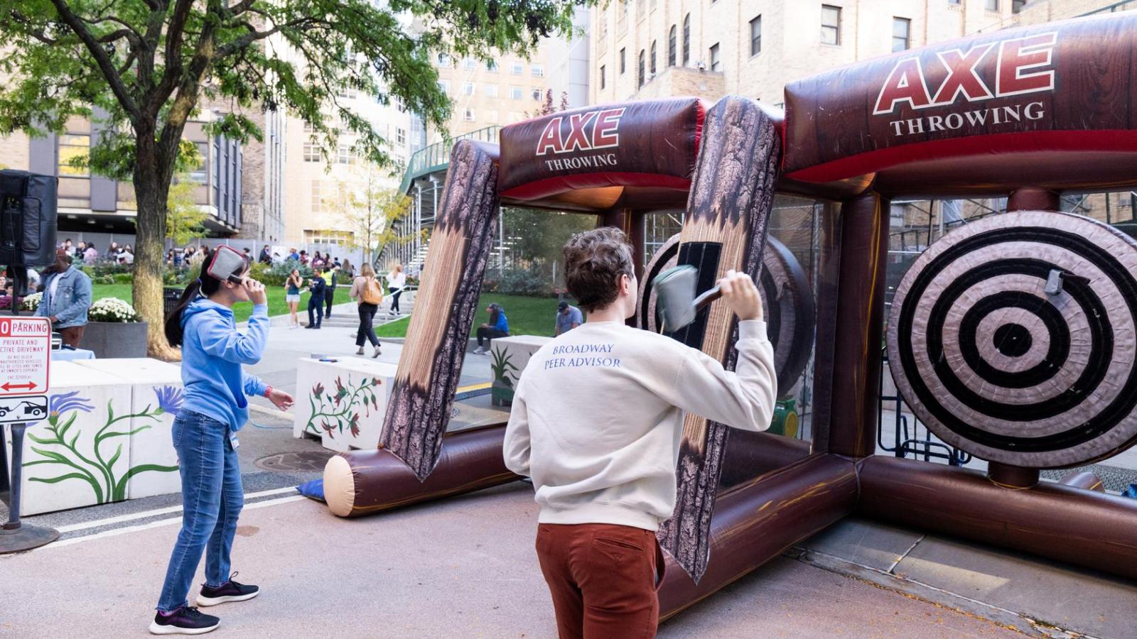 The event featured food and prizes and giant games of Connect 4, Jenga, checkers, inflatable axe throwing, and Operation. Cornhole and dominoes were also available to play. Students were offered a free companion ticket to the homecoming game, as students receive free admission with their Columbia IDs.